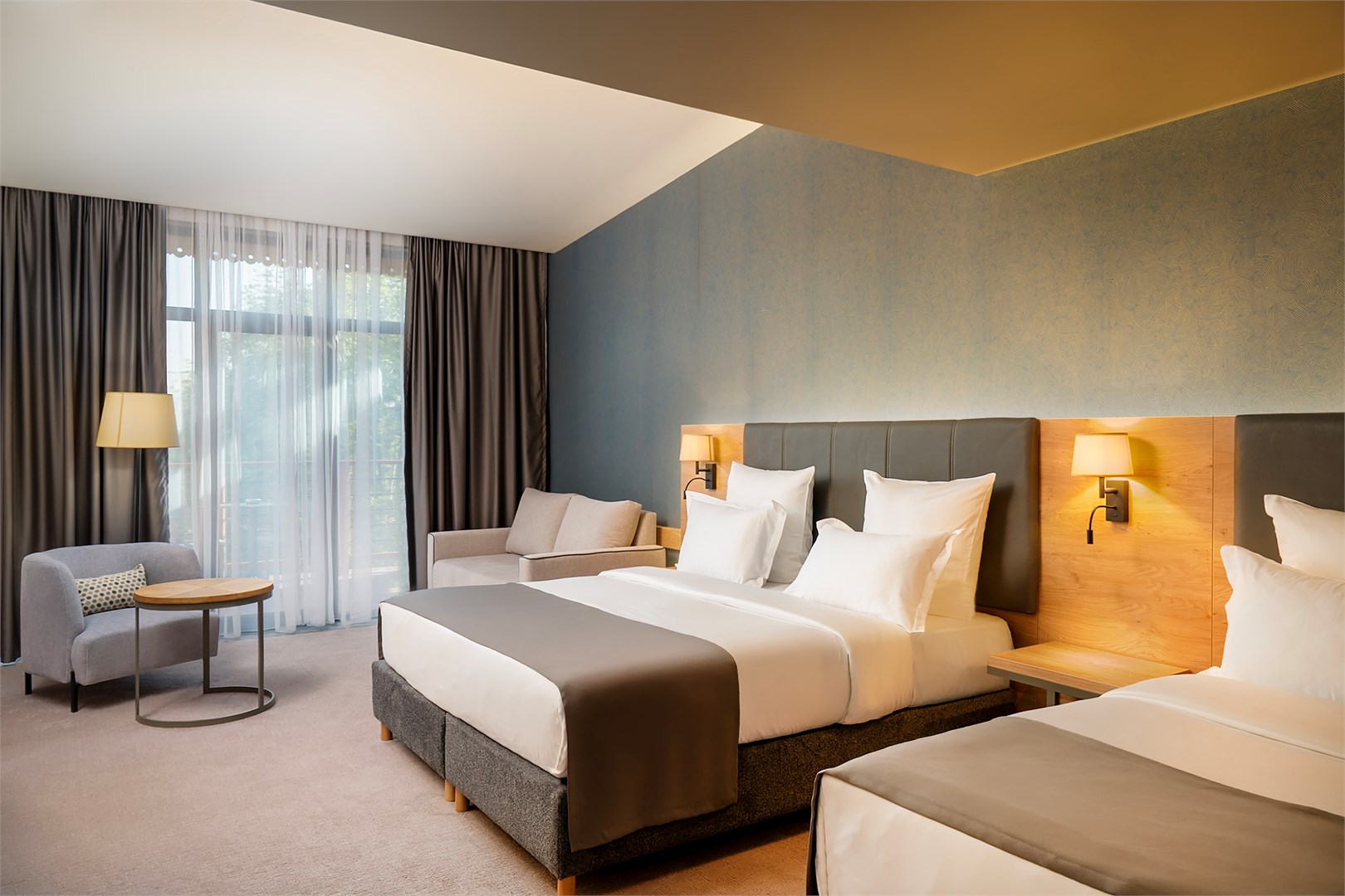 Red Bridge հյուրանոցը բաղկացած է 72 սենյակից և 22 ապարտամենտից, որոնք կատարյալ են ինչպես կարճաժամկետ, այնպես էլ երկարաժամկետ հանգստի համար: Համտեսեք հայկական խոհանոցի համեղ և բազմազան ուտեստները մեր ռեստորանում, լիցքաթափվեք սպա կենտրոնում կամ մնացեք ակտիվ մեր գերժամանակակից մարզասրահում: Գործարար ճանապարհորդների համար մենք առաջարկում ենք լիարժեք կահավորված կոնֆերանս սենյակներ, մինչդեռ նրանք, ովքեր ցանկանում են հանգստանալ, կարող են վայելել իրենց հանգիստը լողավազանում, ինչպես նաև համտեսել խմիչքները մեր բարերում և գինետանը։ Իսկ մեր փոքրիկ հյուրերը կարող են զվարճանալ մանկական սենյակում։ Մենք տրամադրում ենք անվճար տրանսֆեր դեպի Հանրապետության հրապարակ և առաջարկում օդանավակայանից և դեպի օդանավակայան տեղափոխման ծառայություններ հավելավճարով՝ ապահովելով ձեր հանգիստը առաջին պահից մինչև վերջինը: