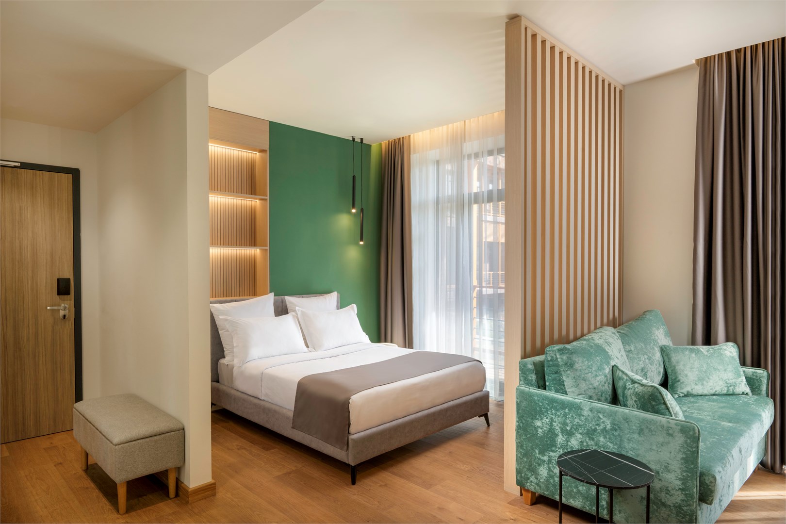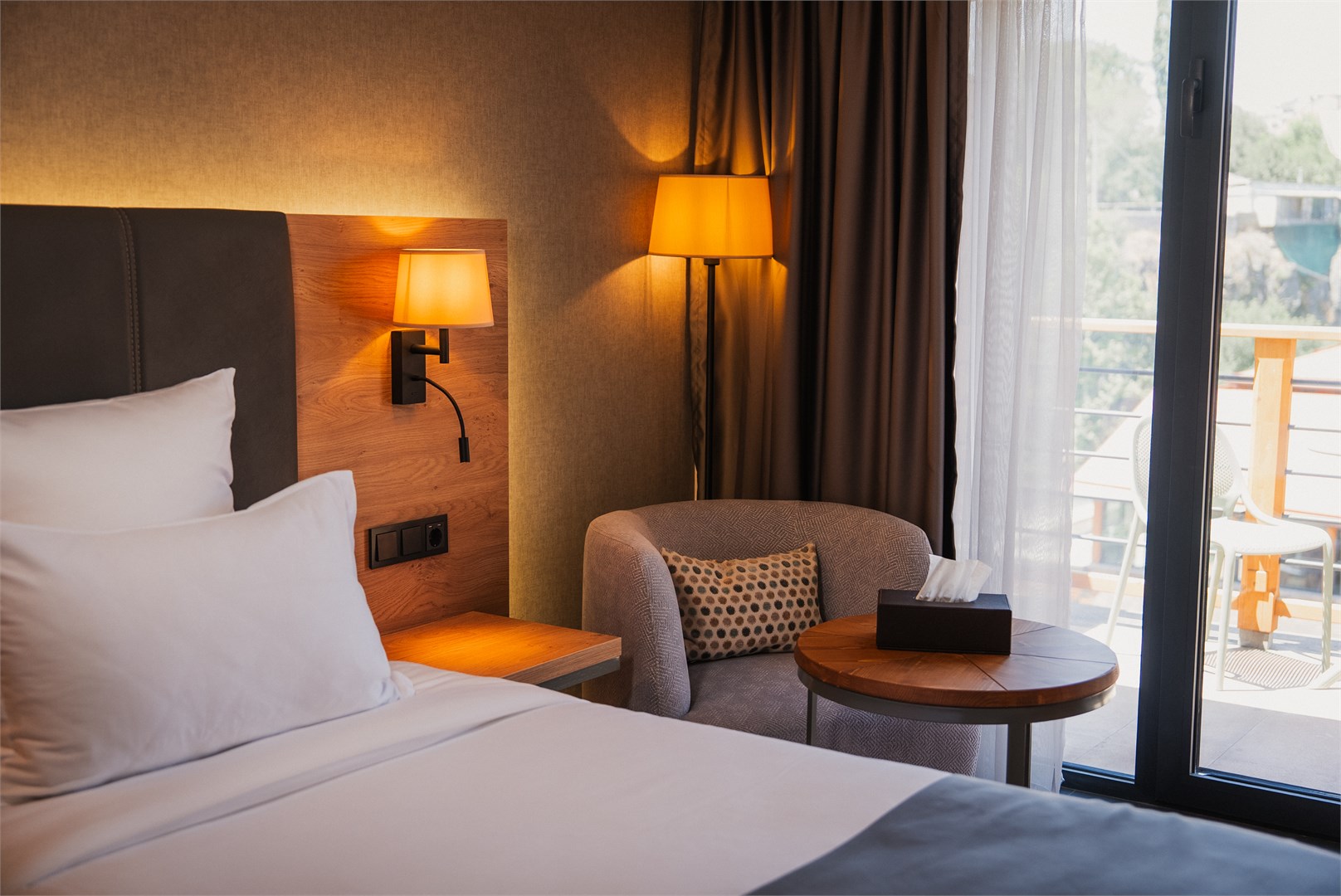 The Red Bridge hotel consists of 72 rooms and 22 apartments, which perfectly suites for both short and long stays. Savor the delicious and diverse dishes of Armenian cuisine at our restaurant, unwind at the spa center, or stay active in our modern gym. For business travelers, we offer fully equipped conference rooms, while those looking to relax can enjoy drinks at our bars, swimming pool, or winehouse. Our little guests can have fun in the Kid's room. We provide complimentary transfer service to the Republic Square and also offer an airport shuttle for an additional charge, ensuring your stay is flawless from the first moment to the last.